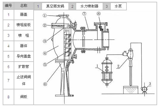 噴咀座板加工精密,精度較高,以使噴射水流準(zhǔn)確地聚集在同一的焦點(diǎn)。水力噴射器由器體、器蓋、噴咀、噴咀座板、導(dǎo)向盤、擴(kuò)壓管及單向閥等部件組成,噴咀用不銹鋼制造,噴咀座板由優(yōu)質(zhì)鋼加工,其余零件則系鑄鐵鑄造。噴咀采用多噴咀的結(jié)構(gòu)形式,以便得到較大的水—汽接觸,有利于熱交換的進(jìn)行,獲得較好的真空效果。整個裝置結(jié)構(gòu)緊湊精密,強(qiáng)度高,用于真空蒸發(fā)系統(tǒng)中,由于能把冷凝器的冷凝作用與真空泵的抽氣作用合并在一個設(shè)備中同時完成,大大地簡化了工藝流程,比之原來真空泵加舊式冷凝器的裝置,可以節(jié)省去真空泵、冷凝器、分水器等設(shè)備,導(dǎo)向盤用于減慢蒸汽(或空氣)的流速,使蒸汽均勻地導(dǎo)入器室以免噴射水流偏斜,降低抽射效能。